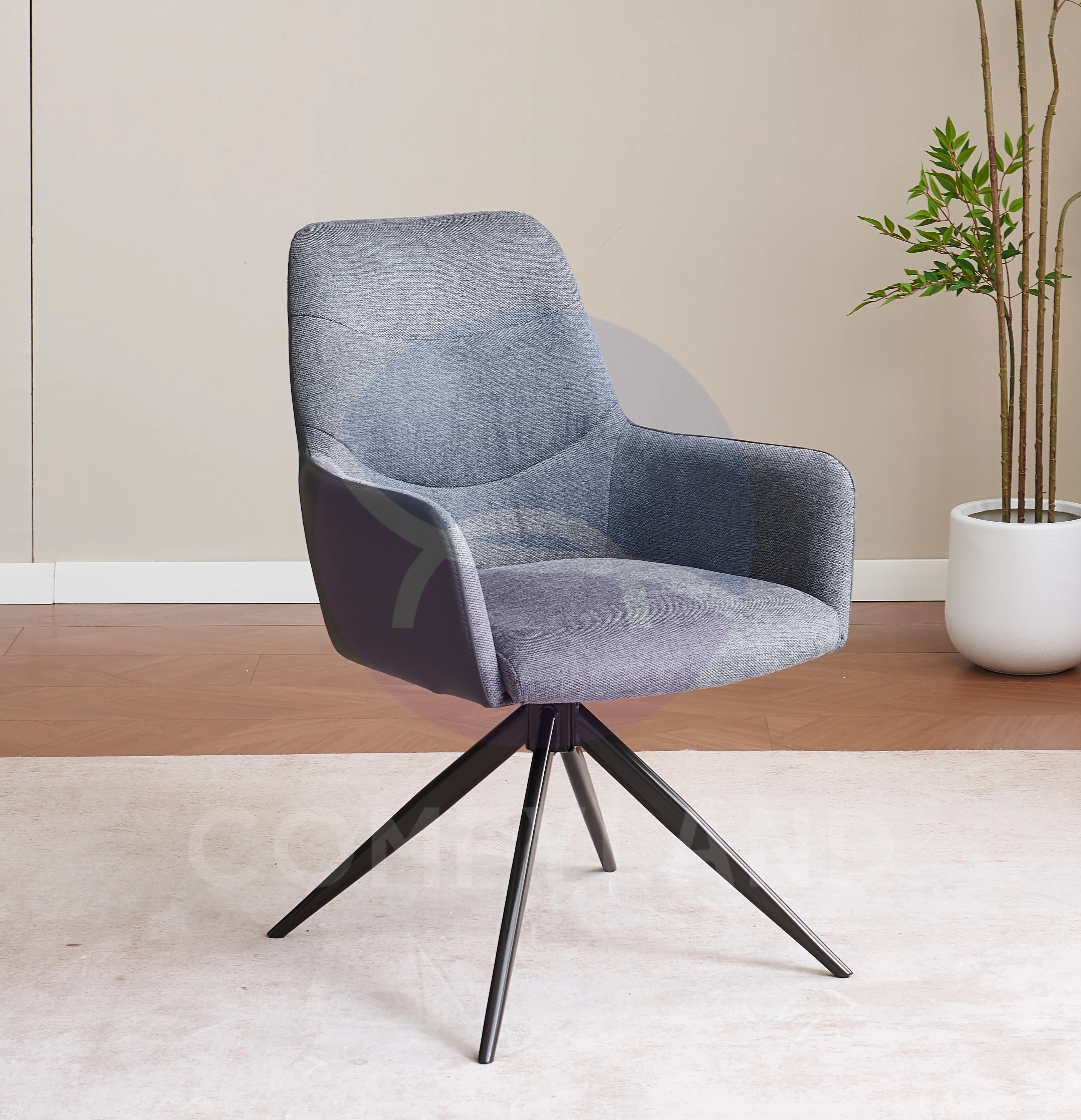 Six fabric dining chairs offer high-density cushioned seating, contoured backrests, and integrated armrests for enhanced comfort during long meals.