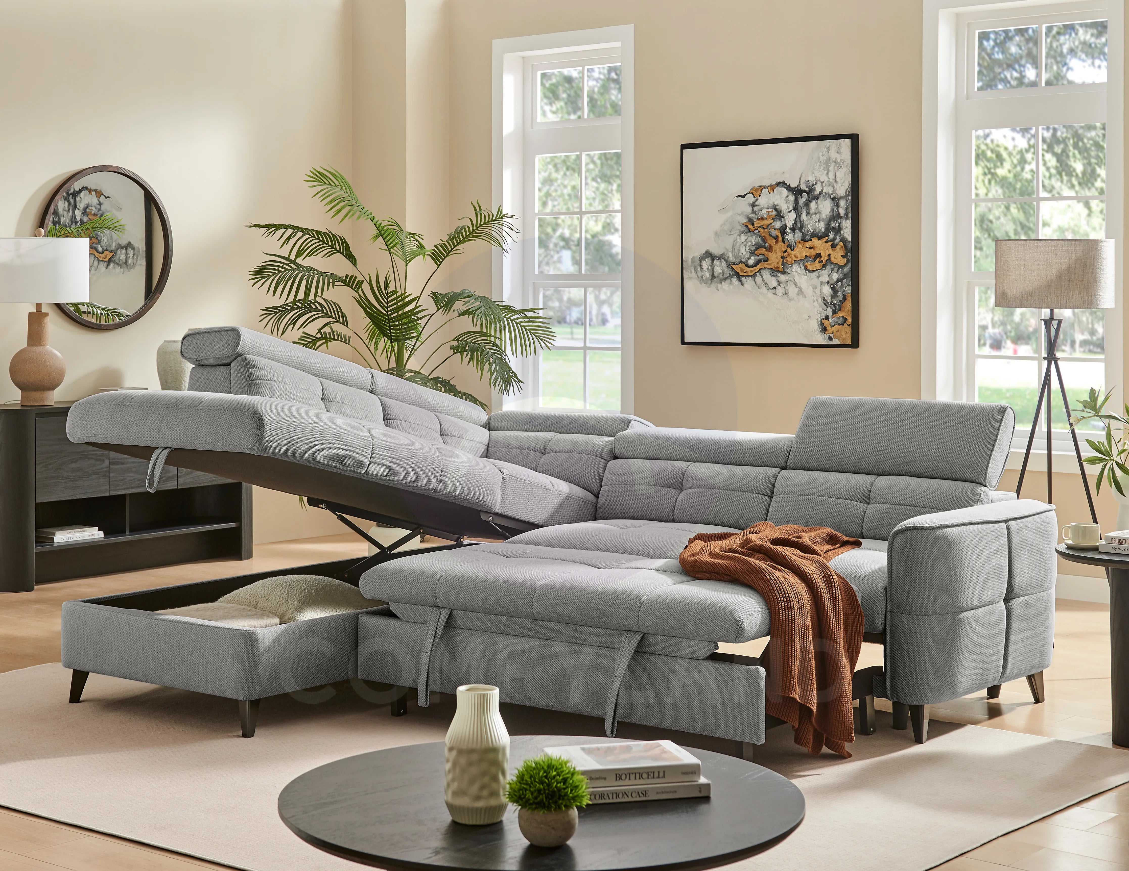 Nello Grey Sectional Sleeper Sofa Bed with Storage