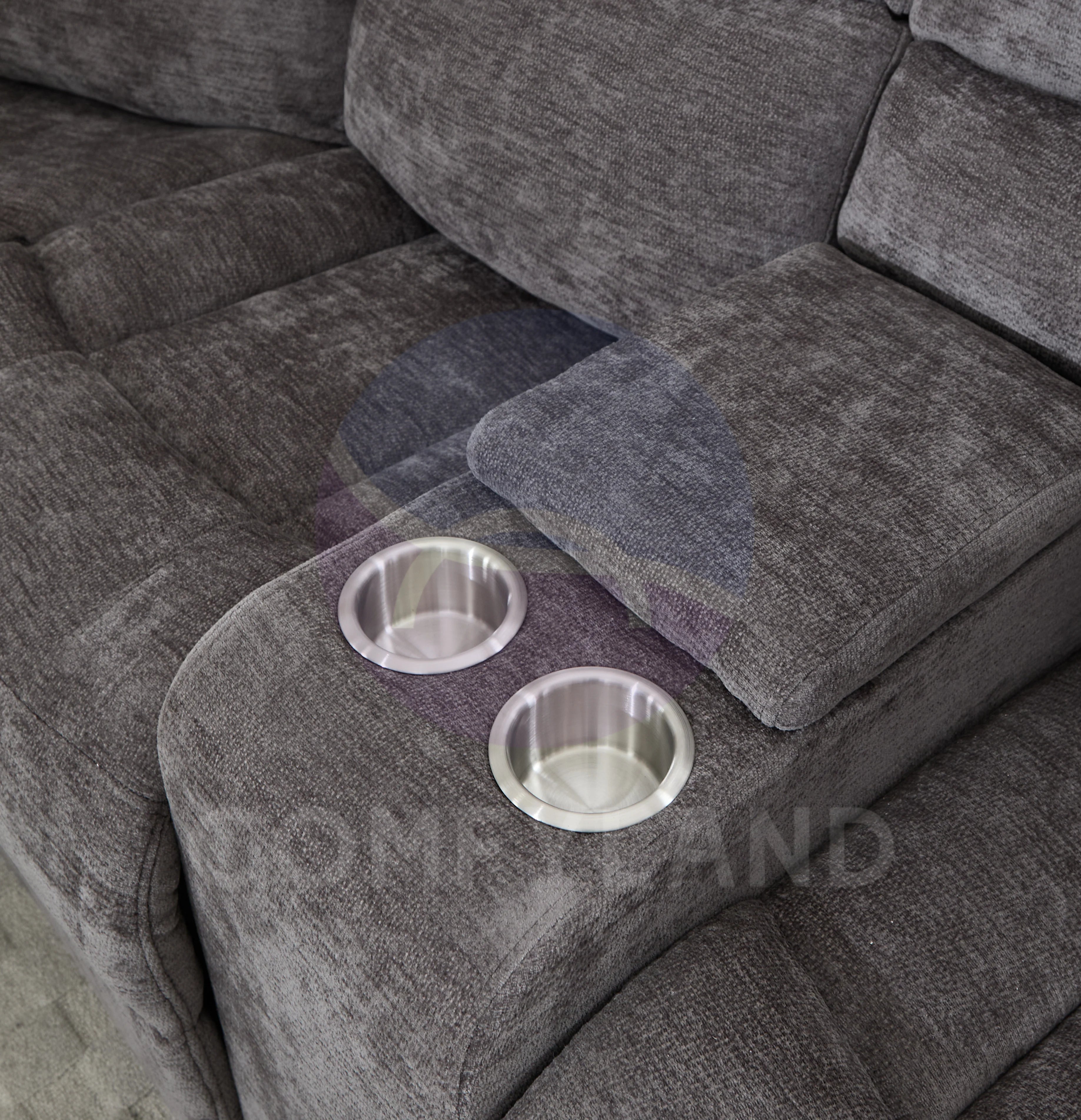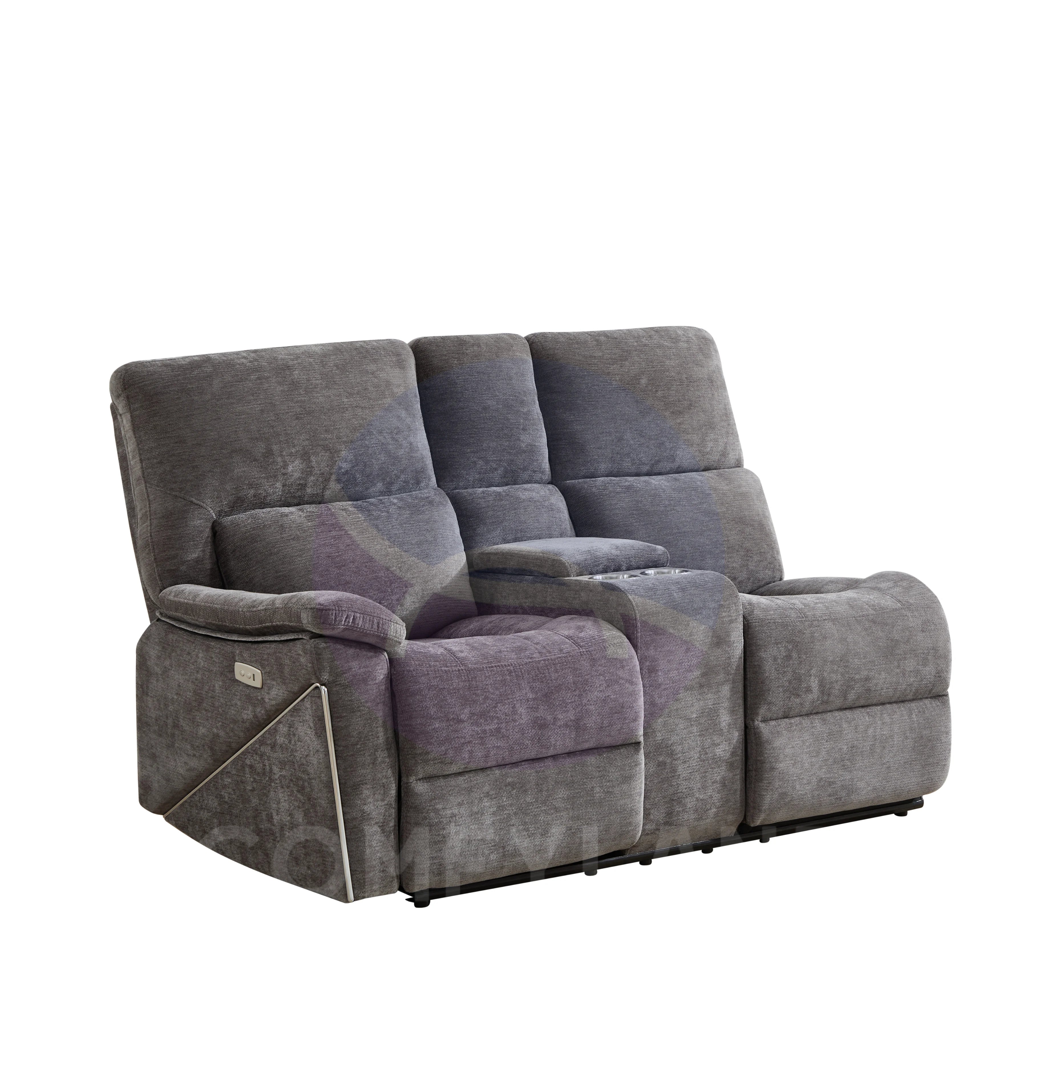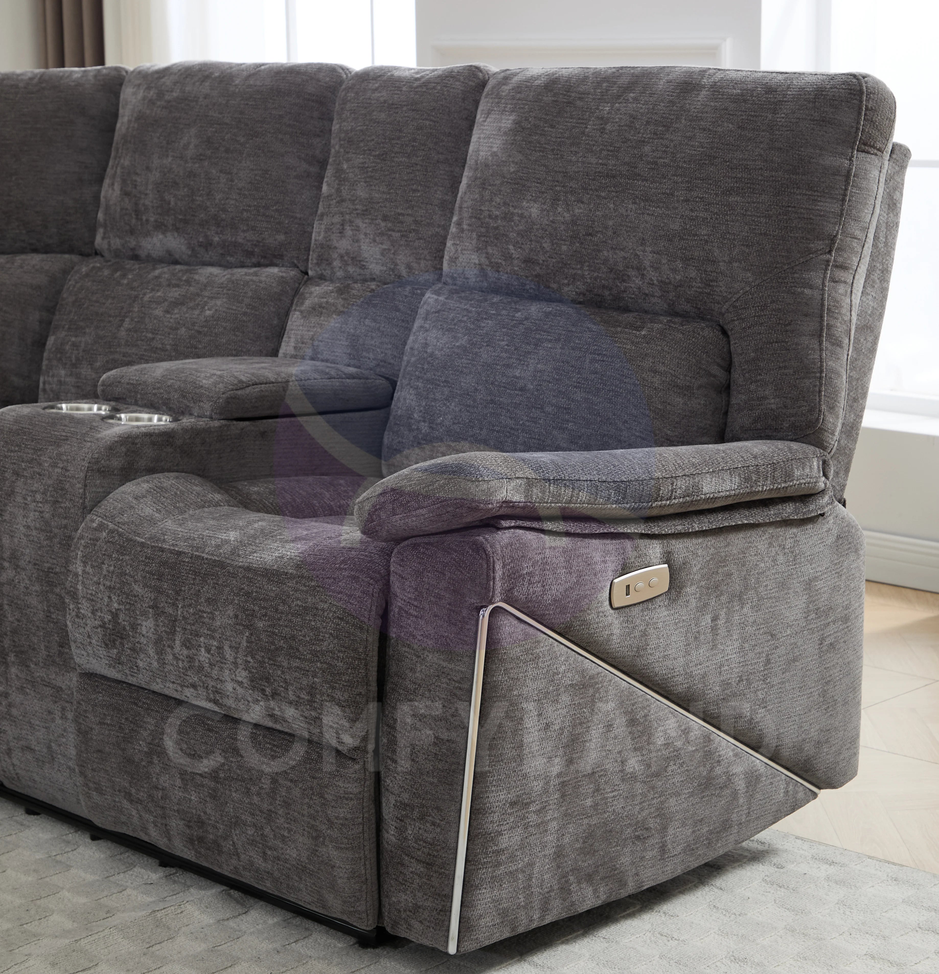 Premiere Grey Fabric Sectional Recliner Sofa with Dual Cup Holders